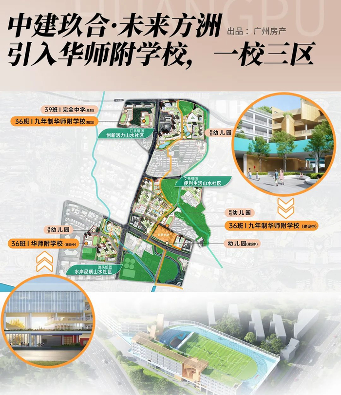 并且,项目已正式官宣引入华师附,一校三区均由“华附联盟”教育集团统一管理,预设总规模为108个班。