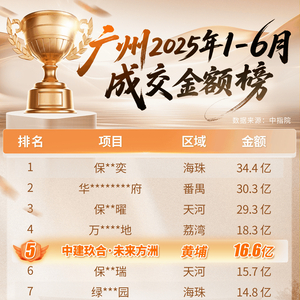 根据@中指研究院最新发布的榜单,未来方洲以16.6亿的成交金额位列广州TOP5。