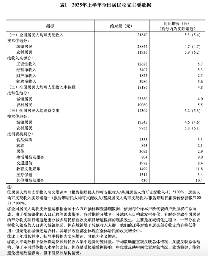 乐居财经 徐迪 7月15日,国家统计局公布2025年上半年居民收入和消费支出情况。