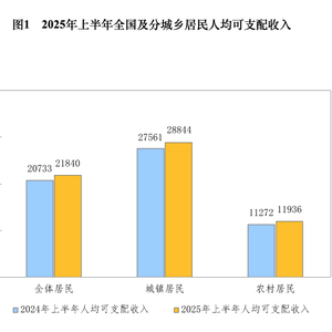 上半年,全国居民人均可支配收入21840元,比上年同期名义增长5.3%,扣除价格因素,实际增长5.4%。分城乡看,城镇居民人均可支配收入28844元,增长(以下如无特别说明,均为同比名义增长)4.7%,扣除价格因素,实际增长4.7%;农村居民人均可支配收入11936元,增长5.9%,扣除价格因素,实际增长6.2%。