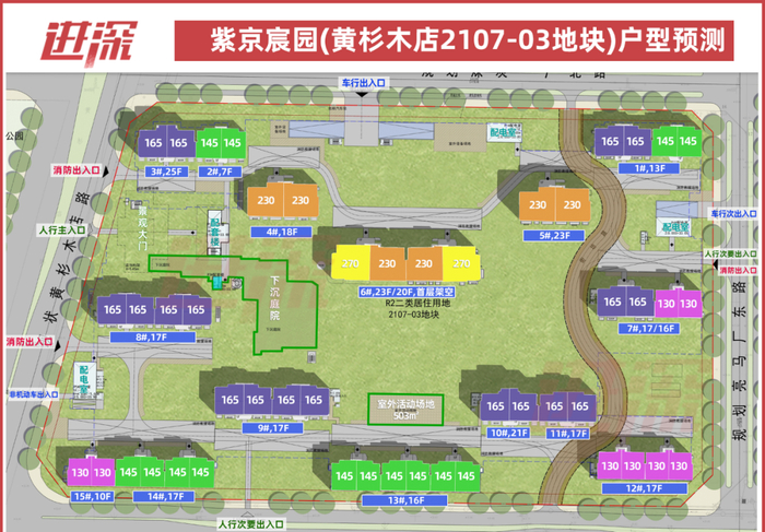 按之前几个新盘的做法,紫京宸园这条街坊路或可效法金茂满曜,做成景观大道,未来仅供步行和应急车行。
