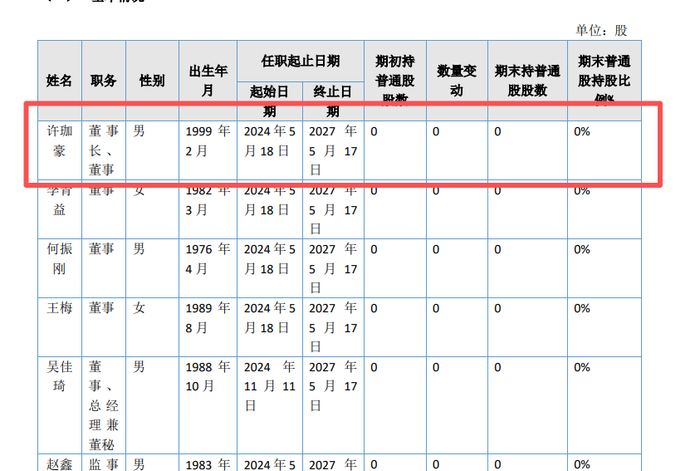 据公告披露,许培新未在公司担任董事、监事、高级管理人员职务。值得注意的是,担任公司董事长、董事的正是实控人许培新与李金妹之子许珈豪,他出生于1999年2月。