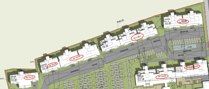 正中间大门口两侧2栋洋房:4#、6#楼,1栋小高层:7#楼;