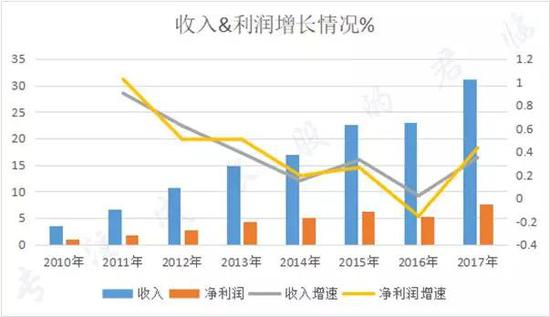 2017年,汤臣营收31.11亿,同比增长34.7%,扣非利润6.44亿,同比增长35.35%。