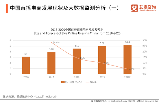 1、2020年直播电商用户规模将达5.24亿人