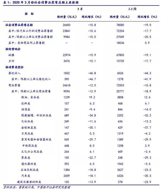 (一)行业总体情况:一季度社消总额同比下滑19%,疫情防控初见成效致使3月消费环比改善