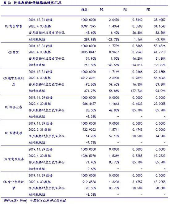 2.商贸零售指数4月上涨0.63%,零售行业PE估值已达到历史中枢水平
