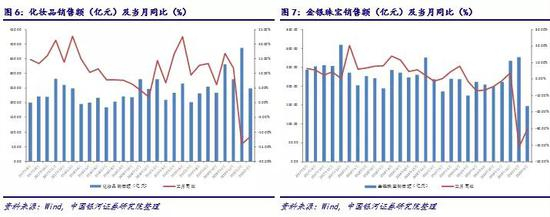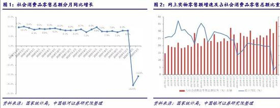 从产品品类来看,化妆品销售额3月同比下滑11.6%,在上年同期高增速的基数基础上大幅滑落26.0个百分点,但由于其环比表现向好,一季度累计跌幅收窄0.9个百分点至13.2%。金银珠宝销售额3月同比下滑30.1%,在上年同期-1.2%的基础上增速放缓28.9个百分点,一季度累计跌幅缩窄3.4个百分点至37.7%。服装鞋帽销售额3月同比下滑34.8%,较上年同期大幅滑落41.4个百分点,一季度累计跌幅进一步扩大1.3个百分点至32.2%,是3月唯一一个没有出现销售额环比改善的品类;CPI中衣着品类3月同比增速较上月下降0.8个百分点至-0.3%的水平,与其他分类相比涨幅偏低。家用电器和家具3月销售额分别同比下滑29.7%和22.7%,较上年同期增速分别降低44.9和35.5个百分点,但环比销售情况均出现改善,因此一季度累计跌幅分别收窄0.1和4.2个百分点至29.9%和29.3%。可选品类销售增速低迷、增速恢复缓慢是由于自春节起新冠疫情爆发后疫情防控措施使得居民外出消费以及可选消费渠道闭店停业等因素影响,使得居民可选品及耐用品消费受客观环境因素影响有所压制。鉴于疫情短期内对可选品及耐用品的消费仅存在压制作用,并且居民在居家隔离期间由于对家具、家电等家用设备的使用频率大幅提升,使得其对居家体验的要求更高,可能还会产生新增需求,基于此,我们认为在疫情结束后,对应的可选消费品及耐用品消费需求大概率将会得到释放,叠加5月份开始的传统旺季与6月电商大促,可选消费回暖可期。