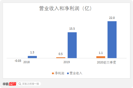 截止2020年三季度,公司营收22.0亿,已超上年全年,同比增长93.3%。