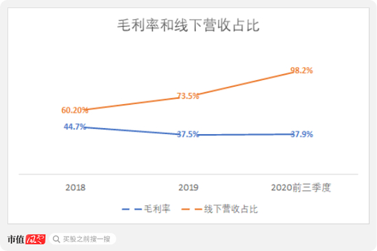 因为线下渠道需要为经销商、零售商预留利润空间。2020年三季度毛利率和去年同期相比也减少2.4个百分点。