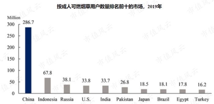 国内烟民的数量2019年约2.9亿,比第二到第九名国家的烟民数量之和还要多,市场空间巨大。
