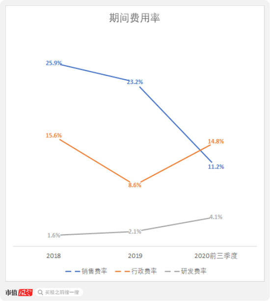 股权激励费用2018、2019、2020前三季度分别为680万、5271万、2.7亿,费用大幅增长主要因公司上市所致。若剔除掉股权激励费用,调整后的净利率2020年前三季度达17.3%,较2019年增加10.8个百分点。