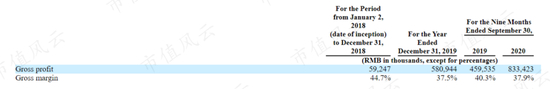 公司产品整体毛利率2018-2020前三季度分别为44.7%、37.5%、37.9%。