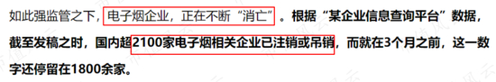 这一规定叠加新冠疫情让电子烟参与者“不堪回首、不愿回头”:截止2020年10月,已有超过2100家电子烟企业注销,包括罗永浩、陈冠希站台的小野电子烟等知名品牌。