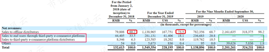 公司2018、2019年线下渠道营收分别为7980万、11.4亿,营收占比分别为60.2%、73.5%。