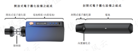 按照雾化液添加方式,电子雾化设备可分为开放式和封闭式两种。开放式电子雾化设备需要自行注入雾化液,注入量、温度均可调节;而封闭式电子雾化设备则预先设定好,不可调节,但方便、易用,在市场上更加受欢迎。