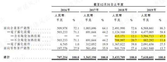 自思摩尔国际推出该技术后,含陶瓷加热技术的电子雾化设备营收从2018年4.2亿增长到2019年35.9亿,而不含陶瓷加热技术的电子雾化设备同期只是由7亿微增到8.8亿。