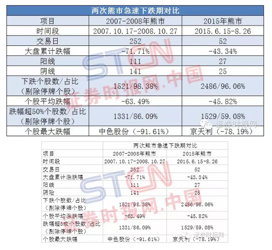 我们再来看看2007-2008和2015年两次大跌的对比。