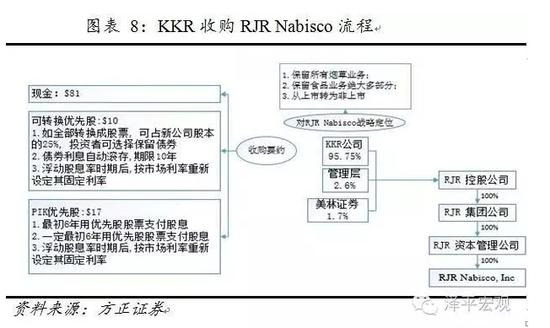 KKR的成功收购,垃圾债的作用可谓功不可没,在总交易金额250亿美元中,KKR自身资金仅有1500万美元,仅占总金额的0.06%,其余资金几乎都是垃圾债券大王米尔肯发行垃圾债券筹得,杠杆之高,令人惊叹。