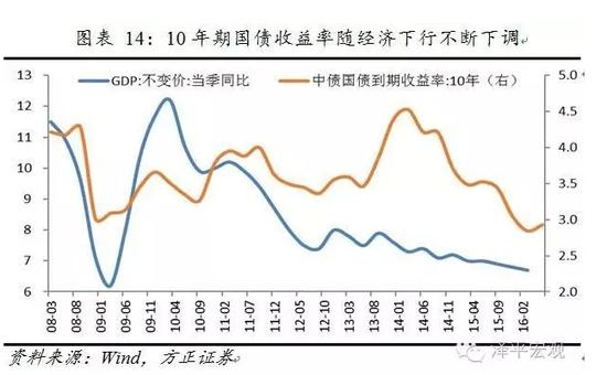中国利率市场化以来,资产对绝对收益不断下降。2015年下半年的长久期债、2016年初的低信用债、2016年一季度的信托票据产品以及2016年二季度的委外资金的收益率分别出现了相对其他品种更快的下降,资金在一点一点地通过加大风险容忍度来换取高收益。