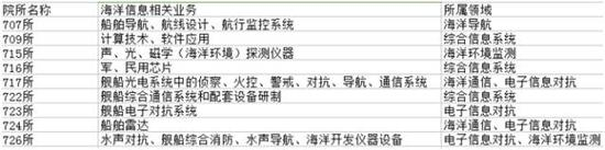 国金证券军工研究员司景喆在研究报告中指出,上述院所中,707所拥有船舶导航、航线设计、航行监控系统业务,709所拥有计算技术、软件应用等业务,715所则涵盖声、光、磁学(海洋环境)探测仪器等业务,具体情况如下: