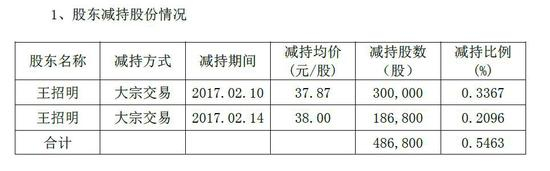 与陈国荣的操作类似,2月10-14日期间,高科石化的另一名董事王招明也通过大宗交易减持了48.68万股,占总股本的0.55%,持股比例从5.546%下降至了4.9999%,触发了权益变动公告。