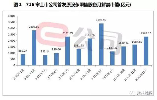 据统计,716家上市公司中有354家公司发生首发原始股东限售股(简称限售股)解禁事件共计506次,2015年、2016年、2017年(截至4月7日)发生解禁事件分别为131次、274次、101次。今年5月,限售股解禁市值高达2321.39亿元,在8月份将迎来解禁高潮,当月解禁市值达到3393.95亿元。如图1所示。
