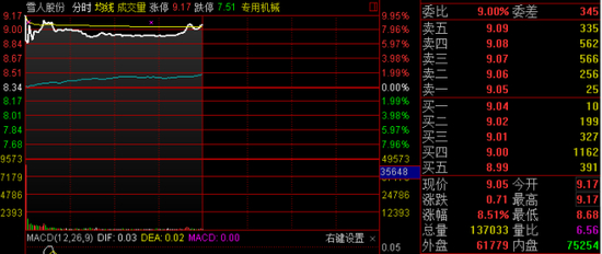 雪人股份截止午间收盘放量上涨8.51%,涨幅排名第二。昨日晚间公告,董事长林汝捷发出增持倡议书,倡议全体员工积极买入雪人股份股票,并承诺凡6月7日至6月9日期间,买入公司股票且连续持有12个月以上并且在职,若因增持雪人股份股票产生的亏损,由林汝捷予以全额补偿,收益则归员工个人所有。