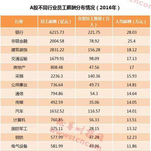 原标题:高考填志愿必看:最新A股各行业员工薪酬排行榜