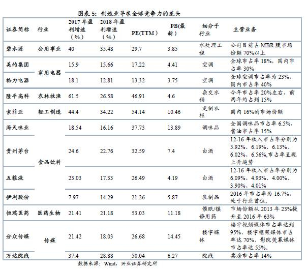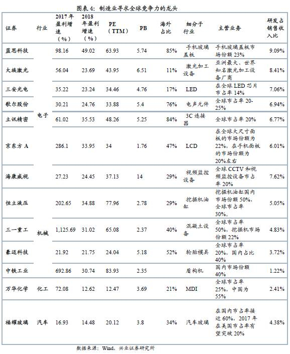 l制造业寻找拥有全球竞争力的龙头,具备从规模优势到创新升级的优势。