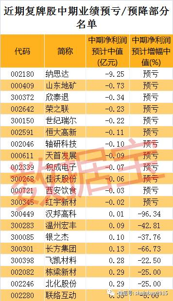 从近期复牌个股的半年度业绩预告情况看,多只个股堪忧。如纳思达、山东地矿、世纪瑞尔、恒大高新、汉邦高科、长方集团等。纳思达业绩预亏金额最高,公司预计2017年上半年净利润亏损7亿元至11.5亿元。