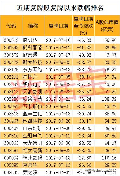 7月20日:万盛股份、新日恒力复牌,当天股价跌停;