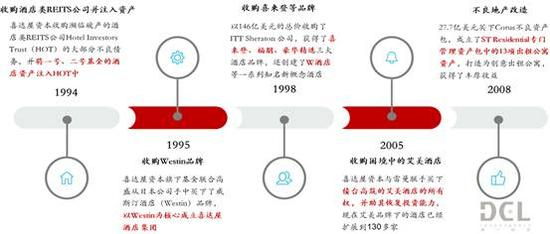 1994年,喜达屋资本集团收购了濒临破产的酒店类REITS公司Hotel Investors Trust(HOT)的大部分不良债务,并将旗下一号基金和二号基金所持有的酒店资产都置入到上市公司HOT中,以换取HOT公司75%的股权,重组后的HOT共持有了47家酒店权益,成为当时美国最大的酒店REITS公司,从而为喜达屋酒店集团的诞生奠定了基础。