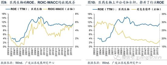 2)医药生物今年中报以来的真实回报率水平也出现改善:医药生物行业ROE和ROIC-WACC均加速改善,虽然ROE的改善仍离不开财务杠杆的加持;