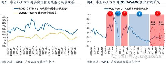 而本轮非金融上市公司ROIC-WACC的回升始于2014年8月,至今共有两段显著的上升小周期: