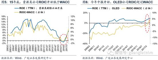 案例二:OLED产业:OLED为高资本投入型产业,受技术创新及产能受限,历史上行业ROIC常低于WACC,对应公司“投入高、产出低”;但在政策不断扶持、技术不断突破的背景下,近年来OLED产业的经营效率得到改善,使得行业的真实回报率水平开始超过综合成本水平,规模经济开始体现。今年中报,OLED行业的上市公司ROIC首次超过了WACC,三季报再次延续了改善势头,从财务数据角度也验证了产业逻辑。
