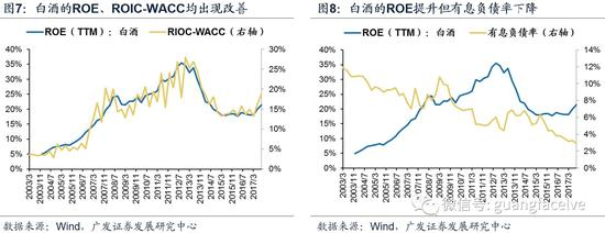 1)白酒无疑是景气加速复苏的代表:白酒行业ROE和ROIC-WACC均加速改善,而ROE的加速提升甚至是在有息负债率持续下行的背景下实现的,意味着真实的盈利能力强劲;