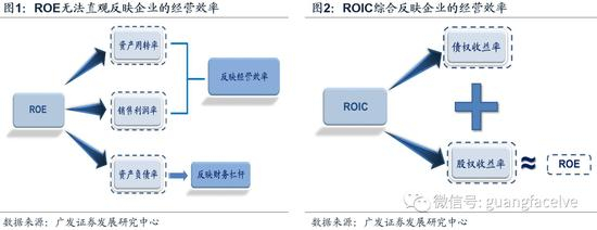 1、ROE容易受到财务杠杆和非经常性损益的扰动;而ROIC衡量投入资本的综合回报率,可以弥补ROE分析的短板。传统的财务分析框架主要基于ROE杜邦分析,即拆解资产周转率、资产负债率和销售利润率三大因子,综合考虑经营效率和财务杠杆的影响,以此衡量企业为股东赚取利润的能力。但ROE的杜邦分析容易受到财务杠杆及非经常性损益的扰动,无法准确衡量企业的综合价值创造能力。而ROIC则不受财务杠杆和非经常性损益的影响,同时ROIC衡量的是投入资本回报率,而不仅仅衡量股权资本的收益率,即ROIC = (债权的利息收入+股权的扣非利润收入)*(1 – 所得税)/(债权资本+股权资本),既不受财务杠杆的影响,也不受非经常性损益的影响,能够更加直观地评估企业的价值创造能力。