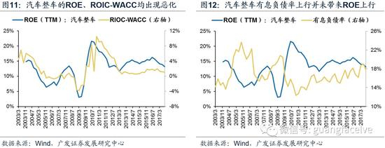 3)汽车整车板块相对更差:今年以来,无论考虑财务杠杆因素与否,其盈利能力都处于下行趋势中,ROIC-WACC反映的真实价值创造能力降幅较ROE更小,这也反映了汽车消费需求下滑对行业的负面影响。