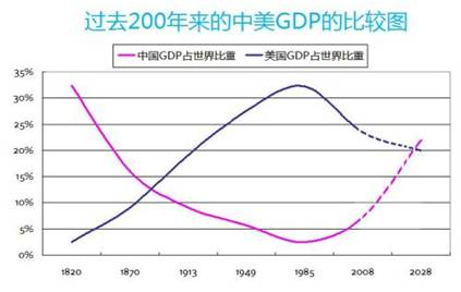 我们回顾来看,这是中国最黄金的一段时光。你在2007年或2008年全球金融危机的时候,在最难的时候你对中国的看法,这个很重要,所有的投资都取决于你的眼光。我们说中国这一段时刻类似于美国的哪一个时刻?我用两个人做比较。1912年摩根说过,做空美国是会破产的。你看美国在全世界的经济占比是一个上升期,巴菲特1956年开始做投资,处于美国经济占全世界的比重上升并将往下行的过程。我们中国目前应该是横跨了两个时代,甚至是第三个时代,我们中国是处于这样一个上升的结果。