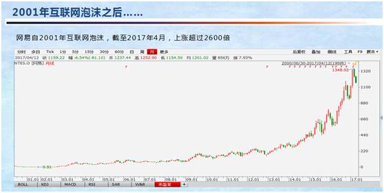 这个公司就是网易。我在一本书上看到一个案例,说一个投资人在一个股票上赚了一百倍,然后很郁闷地跳楼自杀了。比方说你买了网易赚了一百倍,很郁闷地跳楼自杀了。为什么?因为你只买了100股,就辜负了这个时代。我比这个人还惨,我连100股都没买。