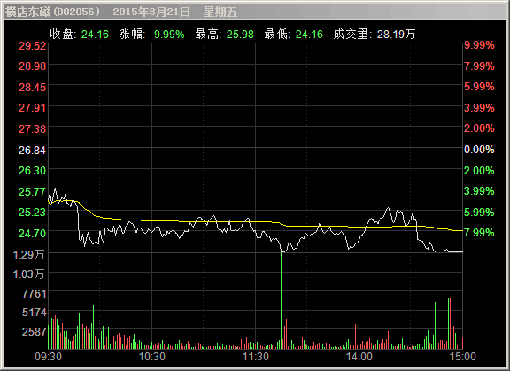 根据处罚决定书,其单笔最大亏损发生在2015年8月操纵横店东磁之时。当月20日,廖国沛的账户组以涨停价26.84元,分32笔共申报买入横店东磁2727.16万股,当日合计成交230.77万股,当日该股涨幅10.00%。
