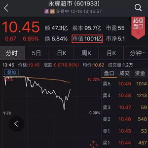12月9日起停牌的永辉超市今日复牌开盘涨停,市值再度突破1000亿大关,接近1030亿元。