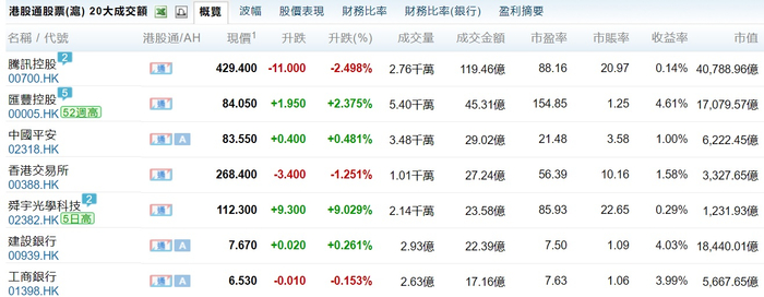 而从整个香港市场方面来看,明星股效应非常明显。市场表现方面,沪港通、深港通前20名的股票大多数也都表现出了强劲的上涨;而在成交金额方面,腾讯控股的成交额更是远远甩开其他公司。