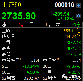 上证大跌3.35%,上证50跌2.01%,当天逾400家个股跌停。