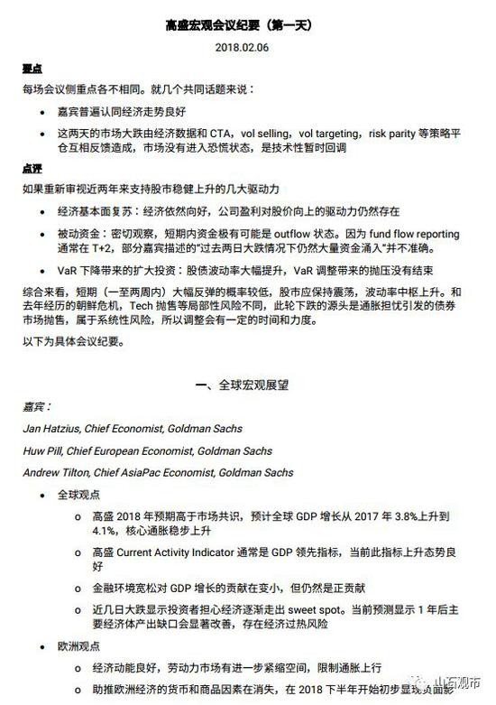 当晚,一份高盛最新宏观会议纪要被传阅,但并未找到定心丸。