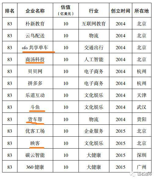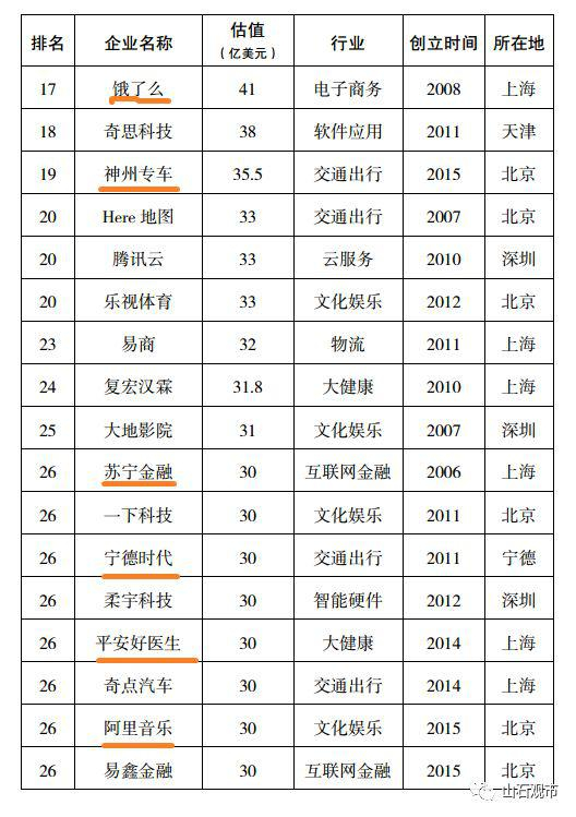 (5)符合条件(1)(2)(3),且企业估值超过100 亿美元的称为超级独角兽。
