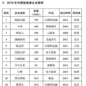 2016年,科技部火炬中心牵头选出131家符合标准的中国独角兽企业。
