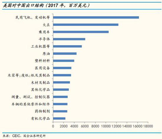2.1 中美贸易结构:美国对中国出口“民用飞机、大豆、汽车”等;中国对美国出口“机电产品、家具玩具和纺织品”等