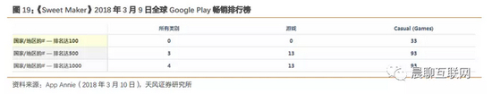 《Sweet Maker》定位于休闲消除类游戏,面向广大的玩家基数。该游戏以玩家自建关卡与多种丰富消除类道具和可变化地图为特色,作为IGG向非SLG类型游戏拓展的第一步,游戏质量尚可,但目前表现平平。该游戏在全球33个国家及地区位列休闲游戏畅销榜Top100,在13个国家及地区位列游戏畅销榜Top500,对于IGG业绩贡献较少。